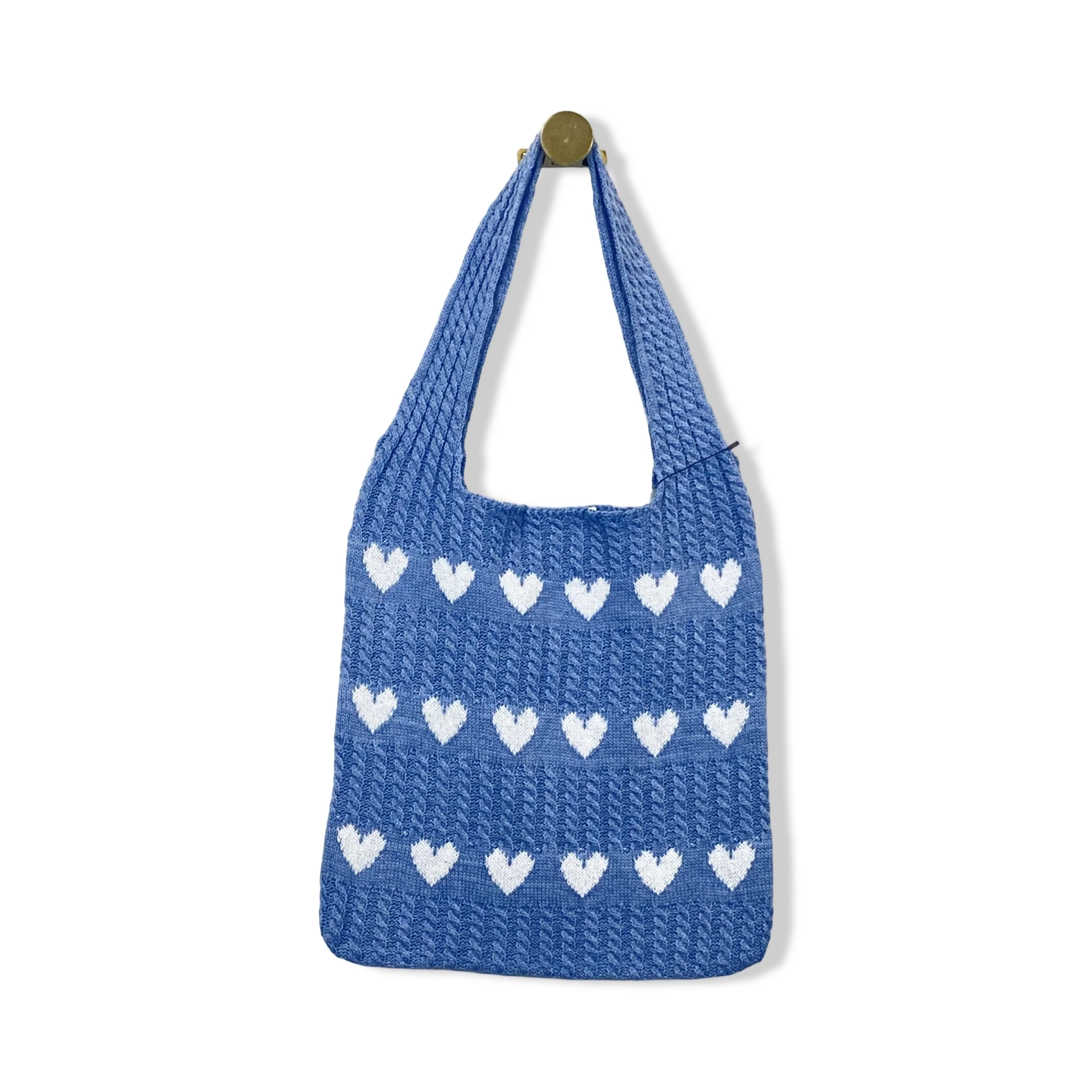 - Knit tote bag with heart shaped design throughout